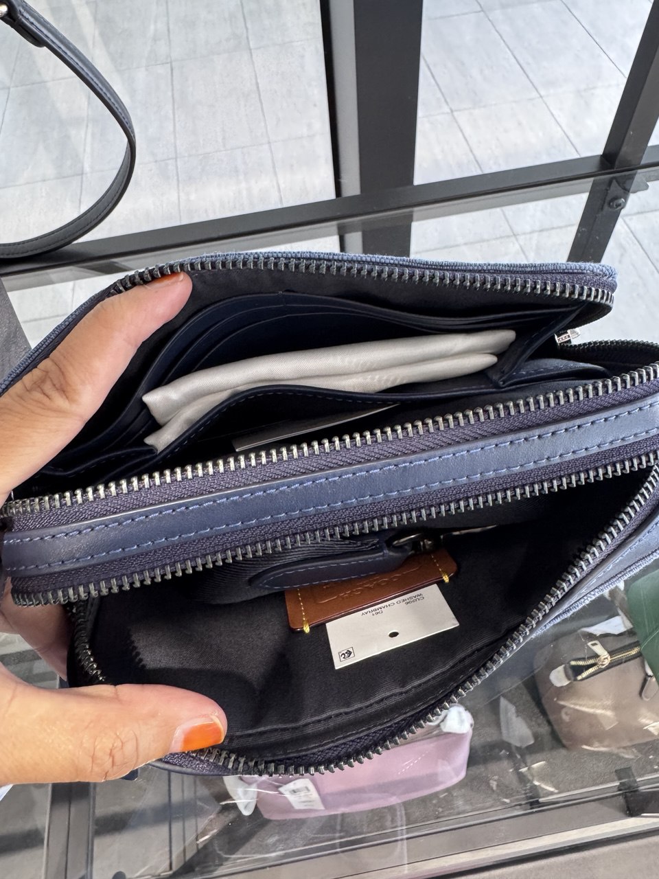 Features Inside multifunction pocket; Six credit card slots; Double zip closure