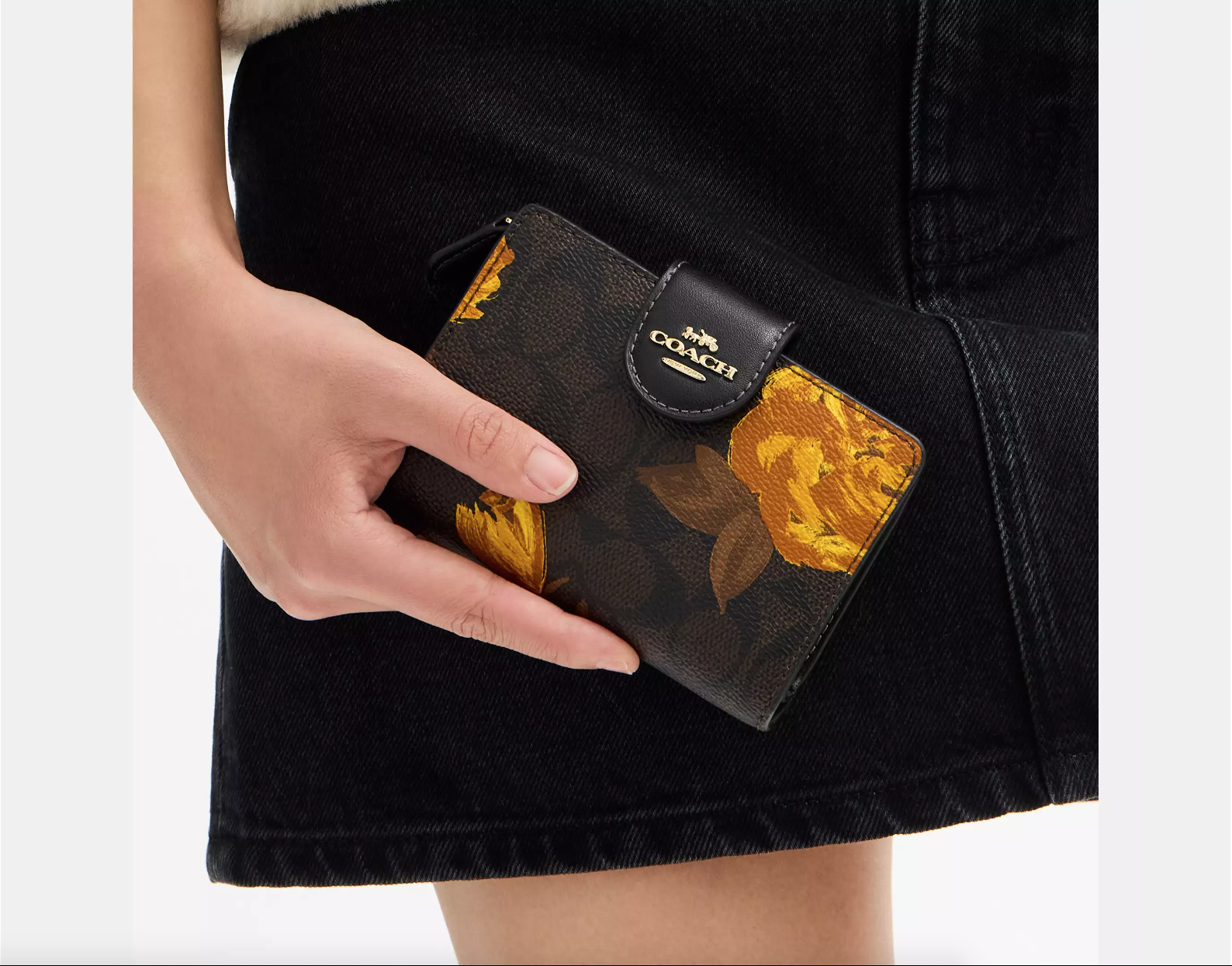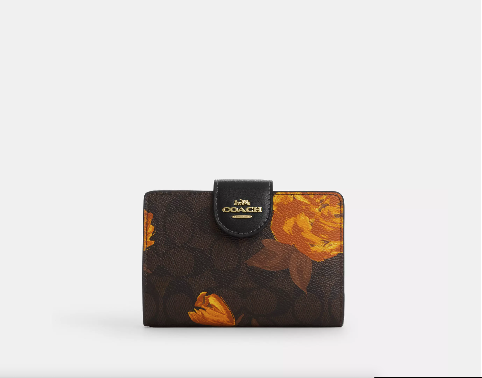 Coach Medium Corner Zip Wallet With Floral Print (Brown Gold)