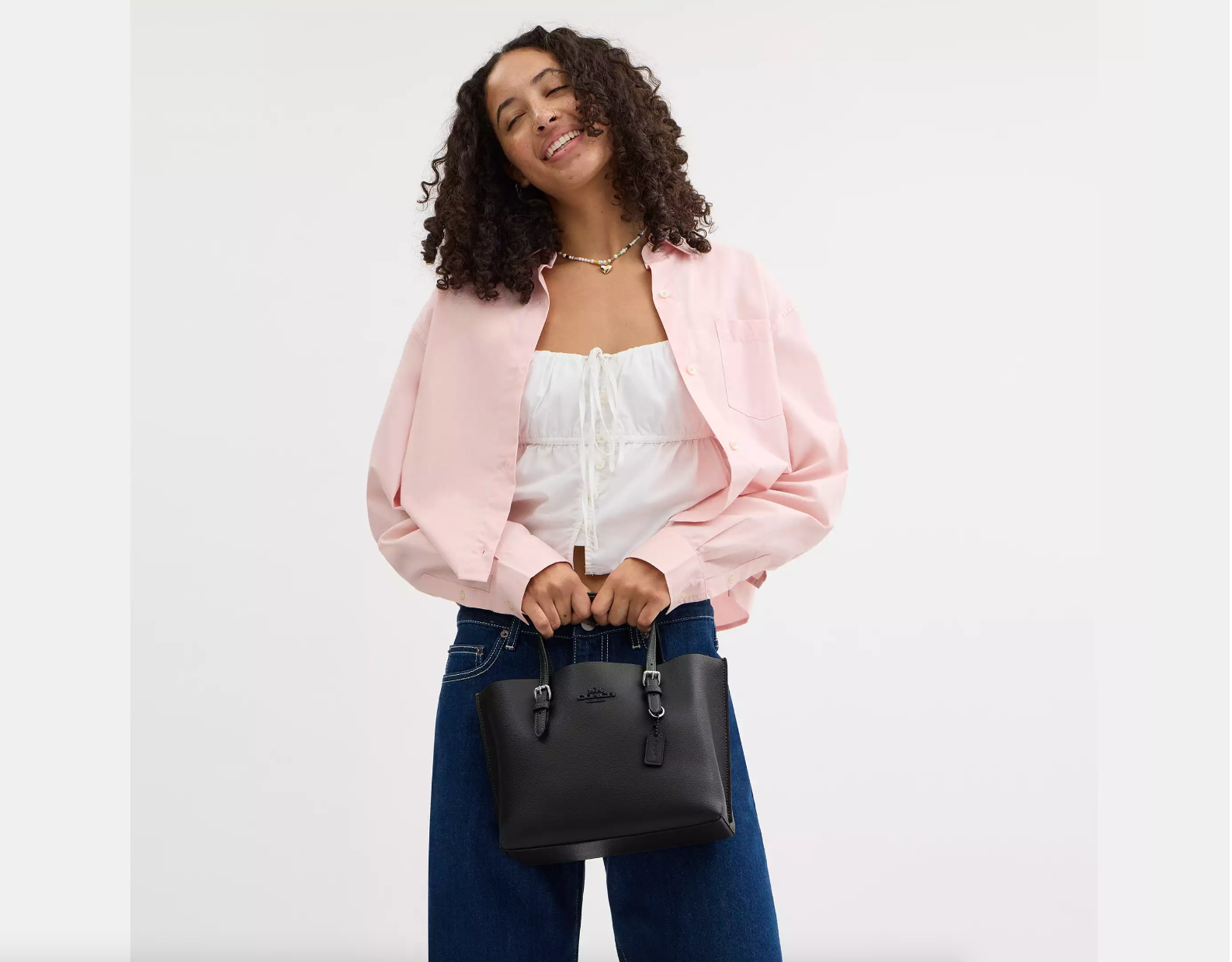 Coach Mollie Tote Bag 25 in Polished Pebble Leather (Black)