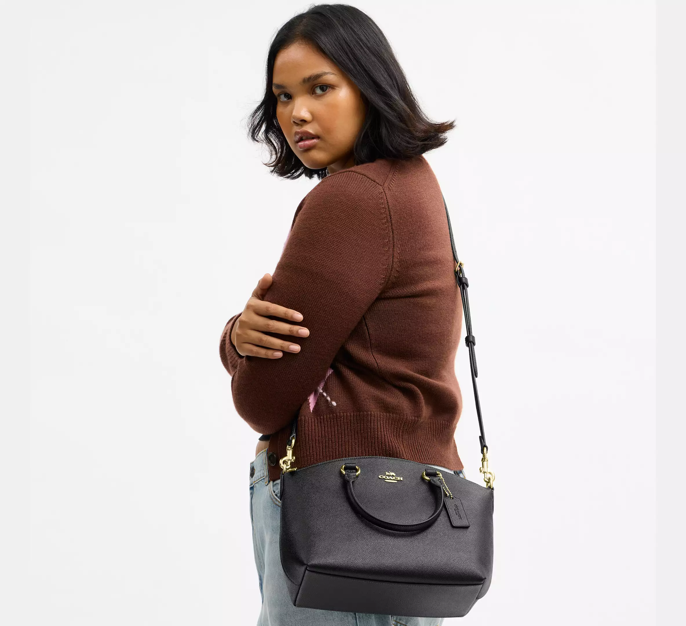 - Detachable strap with 22.25″ drop for shoulder or crossbody wear