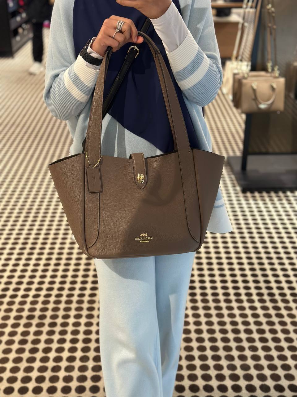 Coach Hadley Turnlock Tote Bag (Dark Stone)