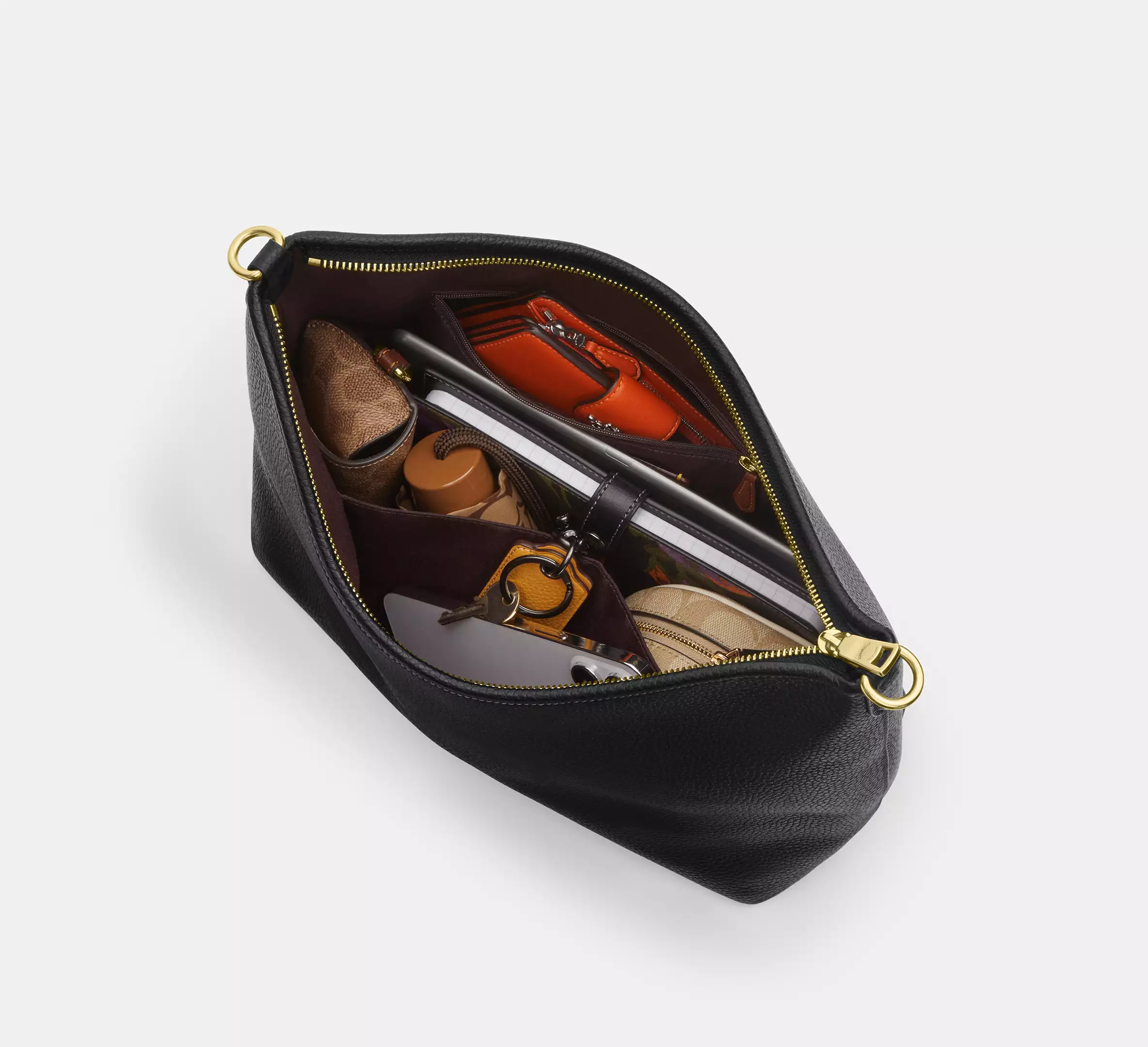 Detachable strap with 21.75″ drop for shoulder or crossbody wear