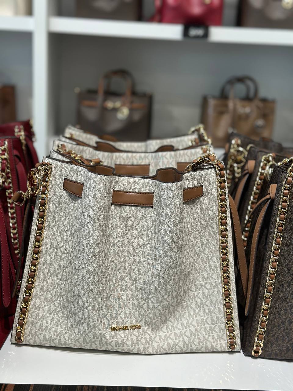 Michael Kors Mina Large Signature Logo Chain Shoulder Bag (Vanilla)