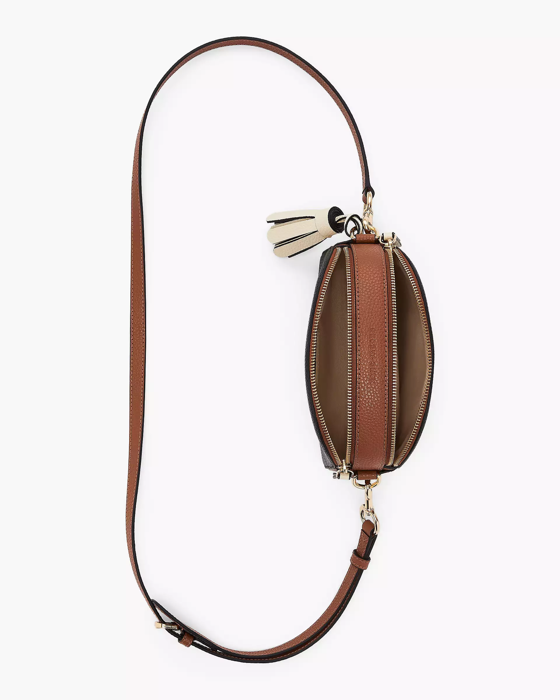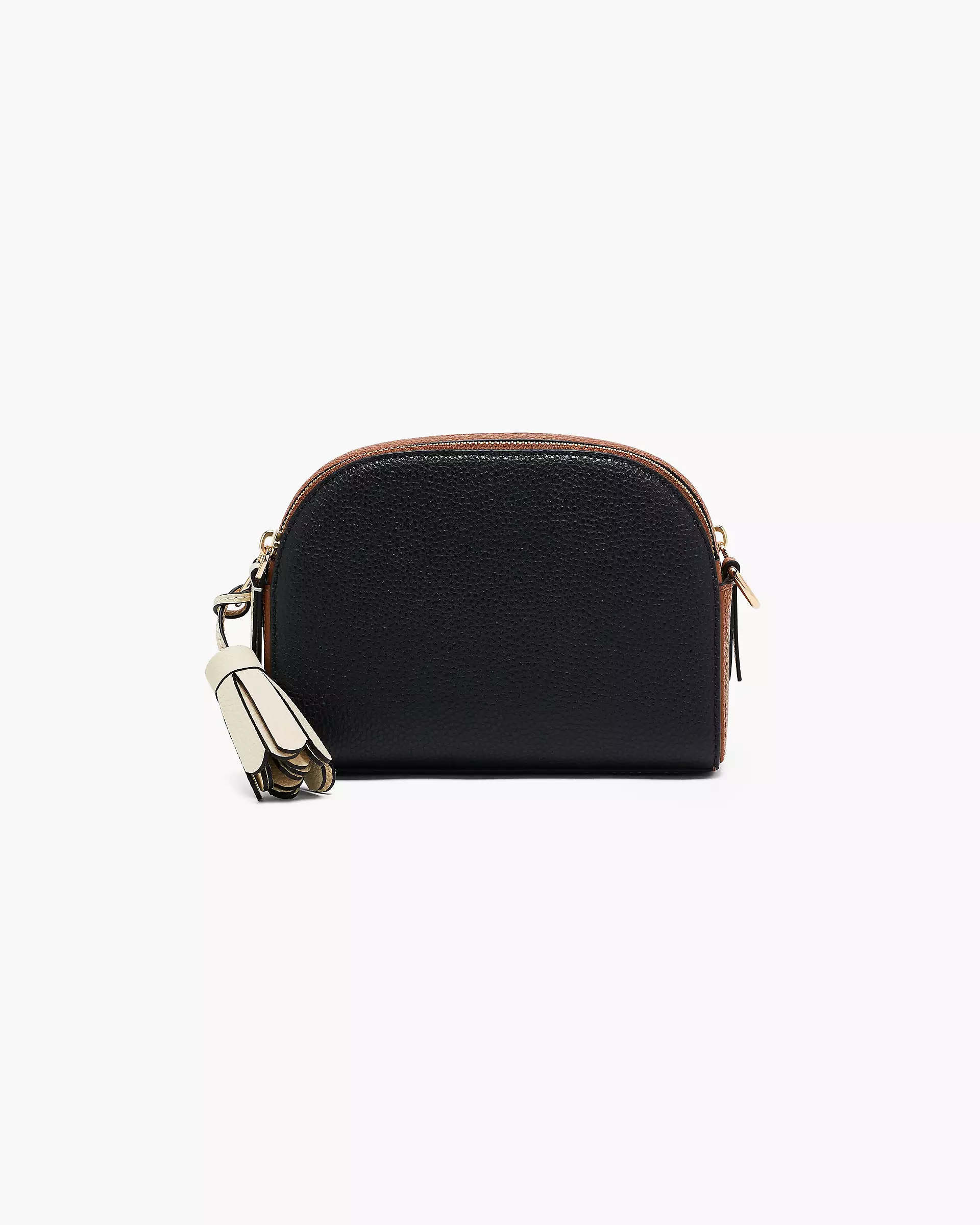 - A modern classic with a twist – crafted in rich pebble leather and finished with signature hardware. Thoughtfully designed with dual top zippers for effortless everyday organization, it includes a removable, adjustable leather strap for crossbody styling